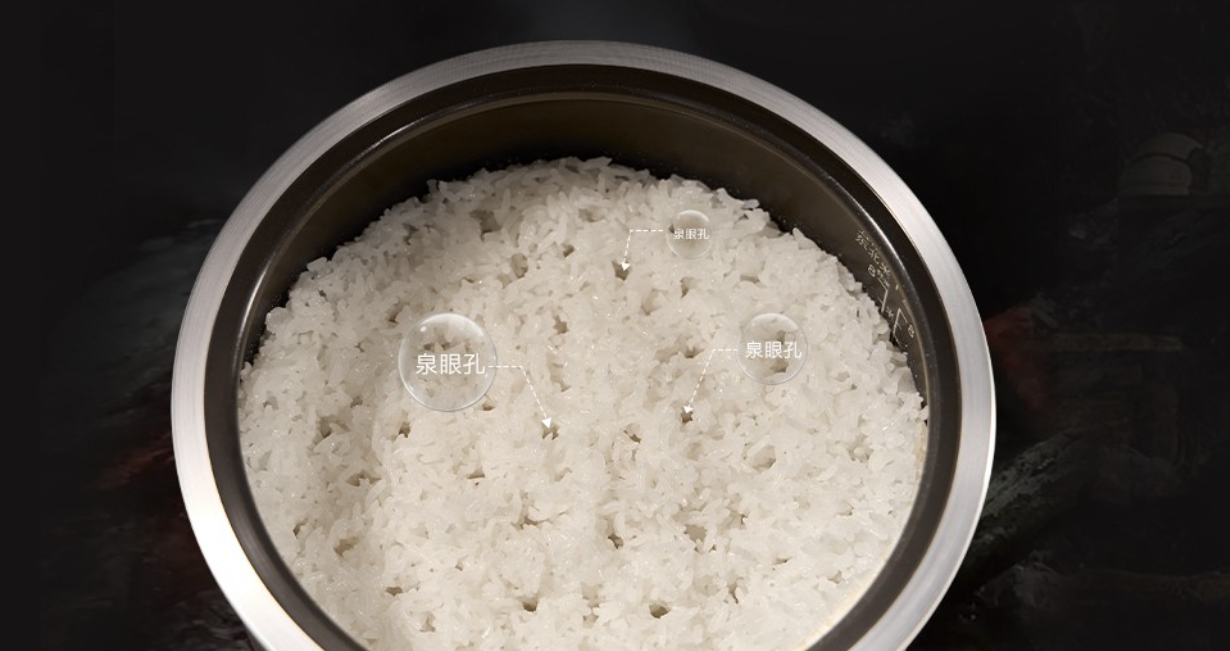 2026年的电饭煲市场,技术竞赛已经进入了白热化阶段。主流的IH电磁加热虽然实现了均匀发热,但真正的技术分水岭在于对“沸腾方式”的控制。头部品牌开始从单纯的“加热均匀”向“流体动力学沸腾”跨越。通过特殊的内胆结构设计引导水流产生“旋流效应”,让米粒在高温热流中剧烈翻滚、充分糊化,这已成为2026年高端电饭煲的标志性配置 。