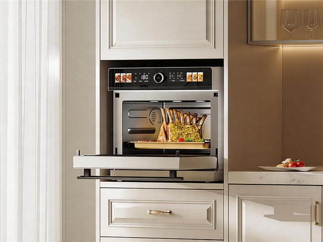 更值得一提的是,X2支持上烤下蒸同步进行。得益于星穹双风炉的强劲热风循环,顶部烤制外焦里嫩,底部蒸汽直喷锁鲜,一炉同出两道菜,烹饪时间缩短50%,真正实现“效率与美味兼得”。宜盾普微蒸烤一体机好用吗?答案是:不仅好用,而且高效。